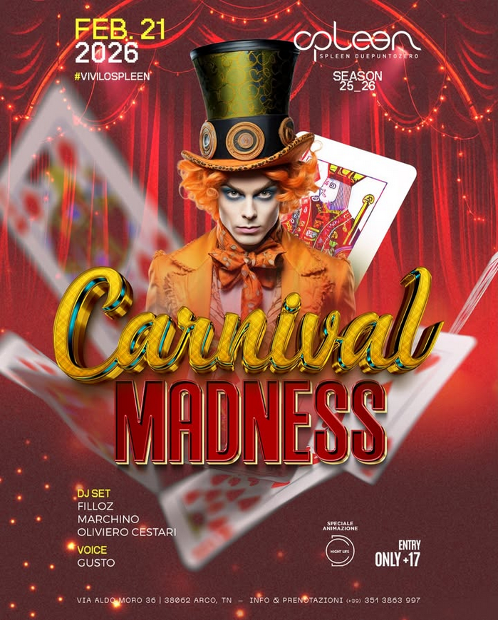 Il carnevale piรน folle e travolgente arriva allo Spleen ๐ŸŽญ